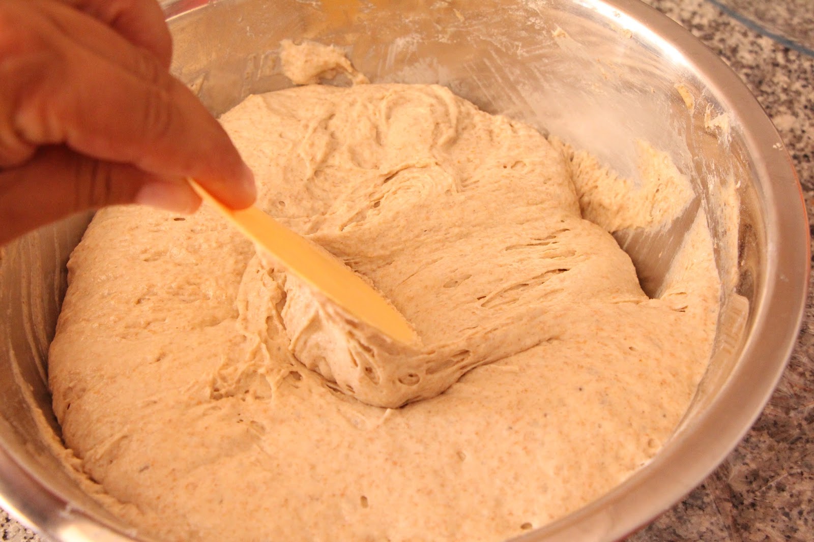 Hacemos un primer reposo de 30 minutos. La masa subirá algo...